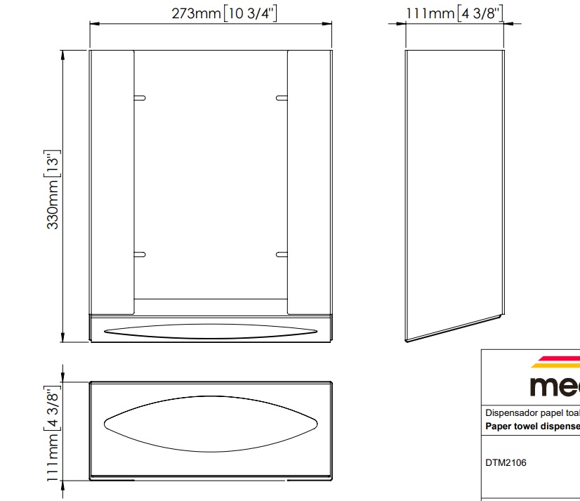 Диспенсер бумажных полотенец Mediclinics DTM2106 | сталь | хром | 273 | 330 | 111 | 10237 руб. |